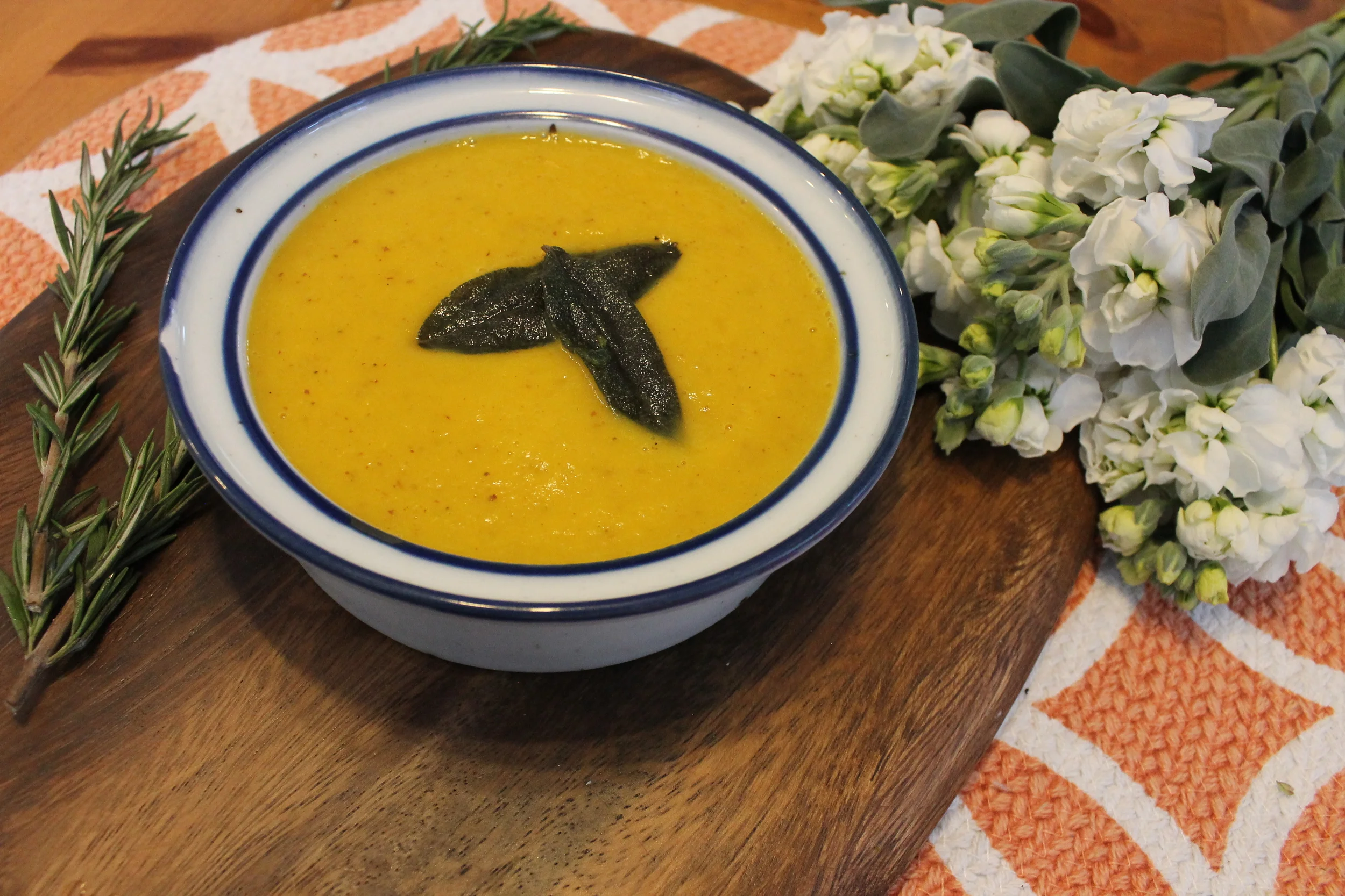 Want to dress it up a bit? Take a couple of sage leaves and lightly fry them in coconut oil or ghee, and delicately place them on top of the soup. Delightfully crunchy and smoky tasting, the fried sage amplifies the wonderful sage flavor already found in the soup while creating an interesting and delicious textural experience.